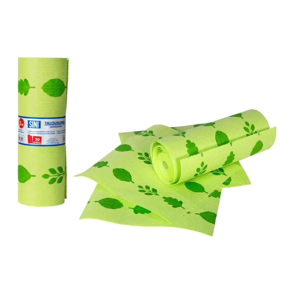 SINI Household towel roll is made of cotton and cellulose. It is very durable, absorbent, soft to use and easy to keep clean and fresh. The cloth is suitable for the kitchen, bathroom and other places where there are moisture-resistant surfaces. The flexible and soft cloth can also be washed rolled up in the cutlery holder of the dishwasher. The household cloth can be disposed of by composting.