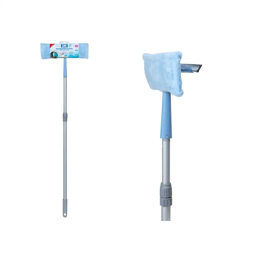 The window washer-dryer is a convenient combination that has an efficiently cleaning window washer and a drying brush in one. The window washer-dryer is suitable for washing all windows and mirrors and also works excellently outdoors, e.g. washing balcony glass. The wide microfiber cover of the washer is easily attached with rubber bands that keep it firmly in place during washing. After use, the cover can be washed clean in the washing machine. The window washer-dryer fits into the SINI handle, so you can conveniently wash the window from higher up without a ladder.