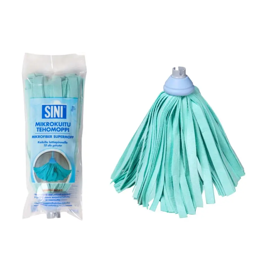 Powermoppen är 100 % mikrofiber. Powermoppen passar alla golvytor. Det är bekvämt att sopa golvet samtidigt som du tvättar fotlisterna. Besvärliga platser som trappor, hörn och möbelbottnar rengörs enkelt med Tehomop.