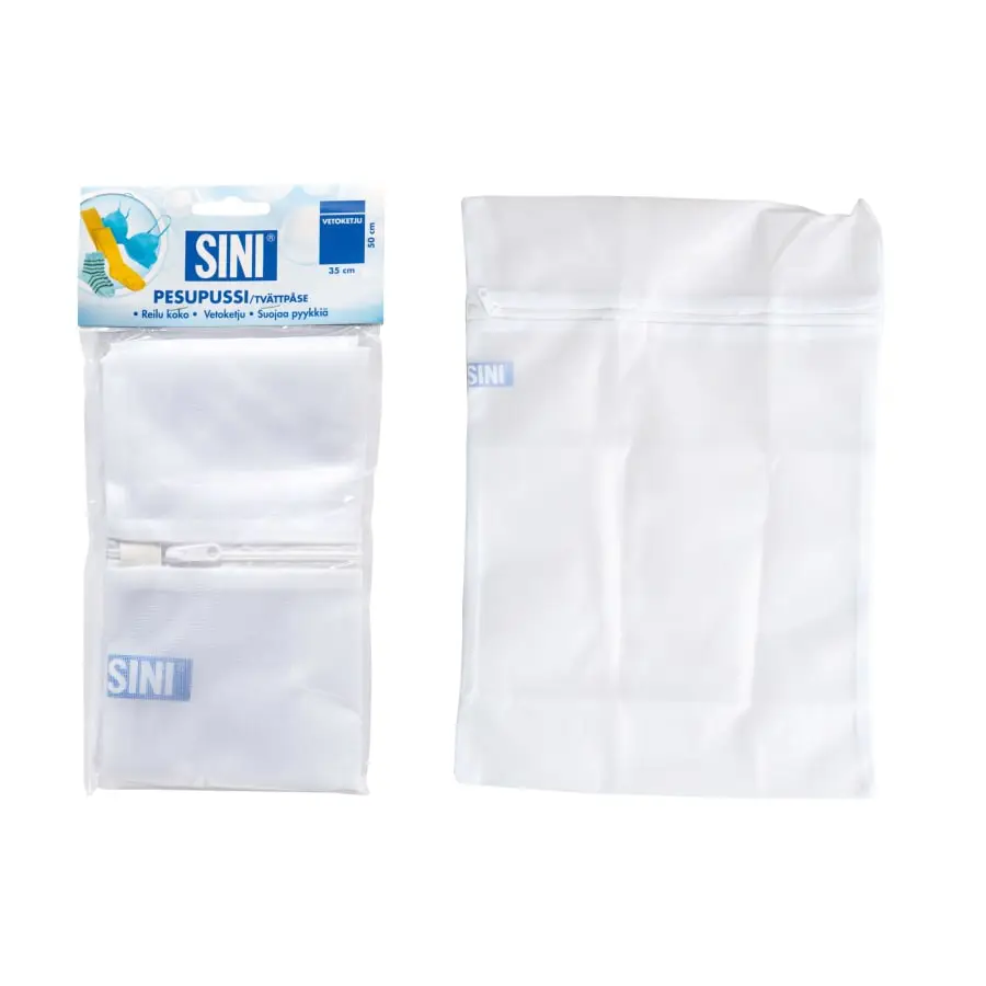 Sini tvättpåsen med dragkedja är utmärkt för att skydda underkläder, strumpor, strumpbyxor och annan mindre tvätt i tvättmaskinen. Dragkedjan på väskan är skyddad med en skyddsrem, så att den inte skadar annan tvätt. Tvättpåsar är praktiska när du reser: packa strumpor, underkläder och t-shirts i sina egna väskor och reservera en för smutstvätt också. Rekommenderas för att tvätta mikrofiberdukar och moppar i tvättmaskinen.