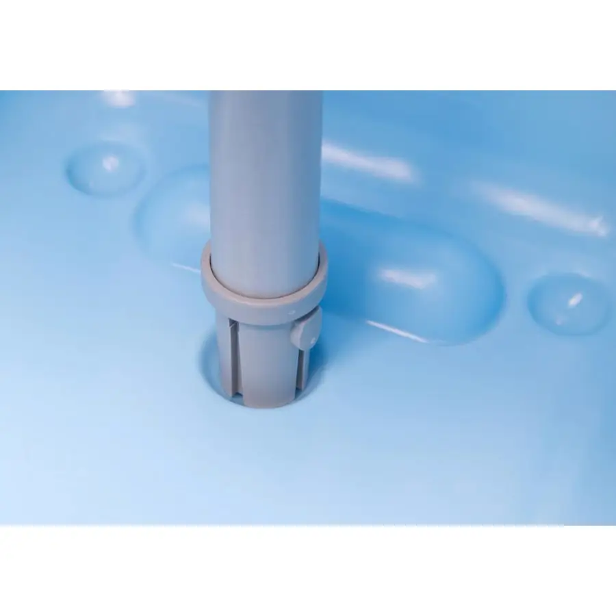 - Den inre botten av hinken har ett hål för handtaget och den yttre botten har bärspår för att hälla vatten