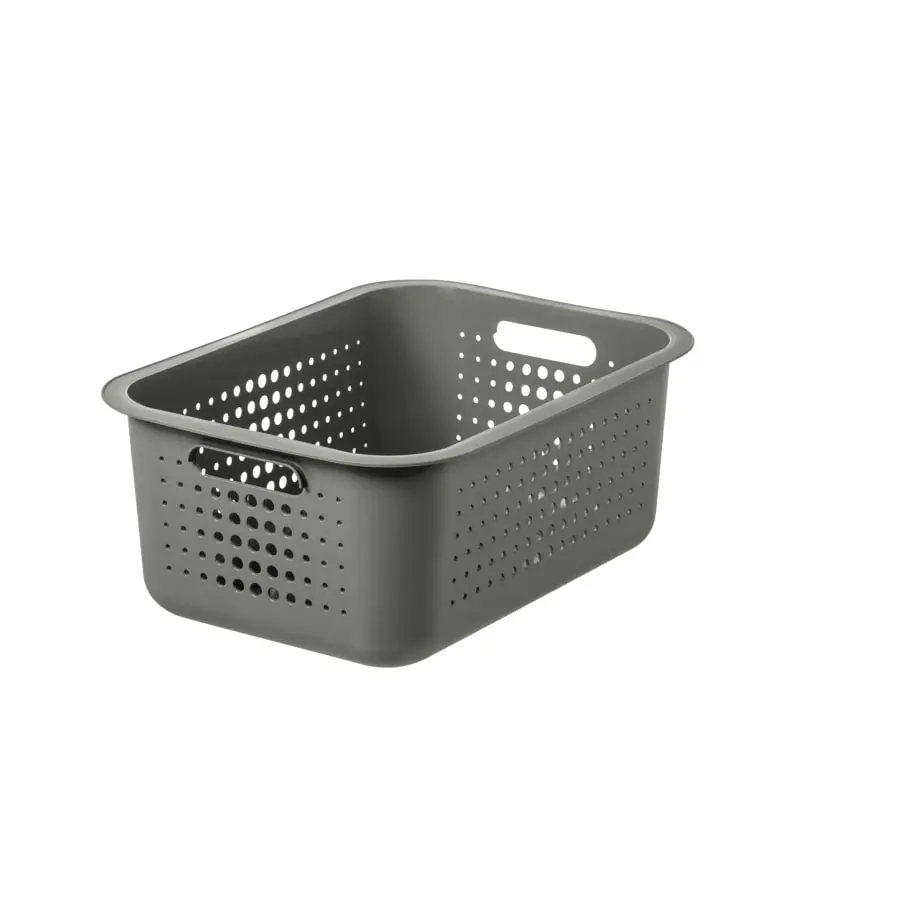 SmartStore Basket Recycled är tillverkad av återvunnen plast. Den lätta och slitstarka korgen passar för både torra och fuktiga utrymmen i hemmet.