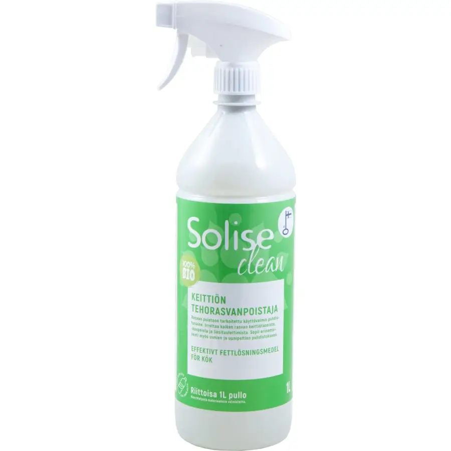 Domestic and biodegradable, ready-to-use cleaning agent intended for degreasing. Removes all grease from kitchen counters, kitchen cabinets and range hoods. Safe to use also on food preparation surfaces.