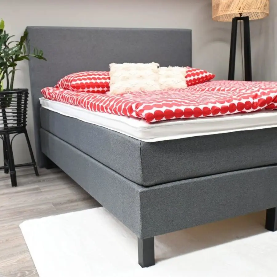 Bassänggavel grå. Klädselmaterialet är grått Malmö 95 möbeltyg. Kan kombineras med alla sängar i Base-serien.