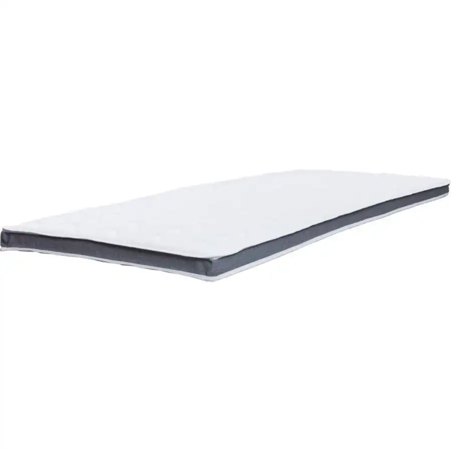 Petauspatja on verhoiltu valkoisella stretch-kankaalla, reunassa on vaaleanharmaata Malmo 90 -huonekalukalukangasta. Irroitettavan petauspatjan päällisessä on vetoketju kolmella sivulla ja päällinen on vesipestävissä +30 asteessa.
