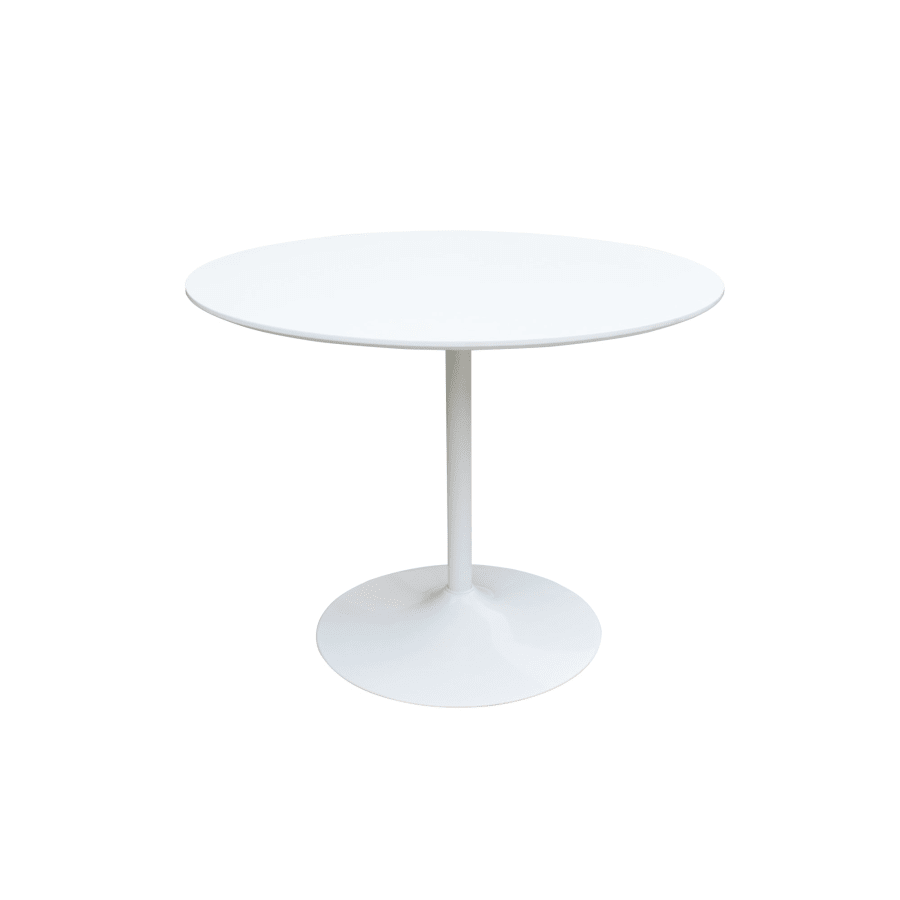 Matt white painted Mdf cover, powder coated trumpet leg.