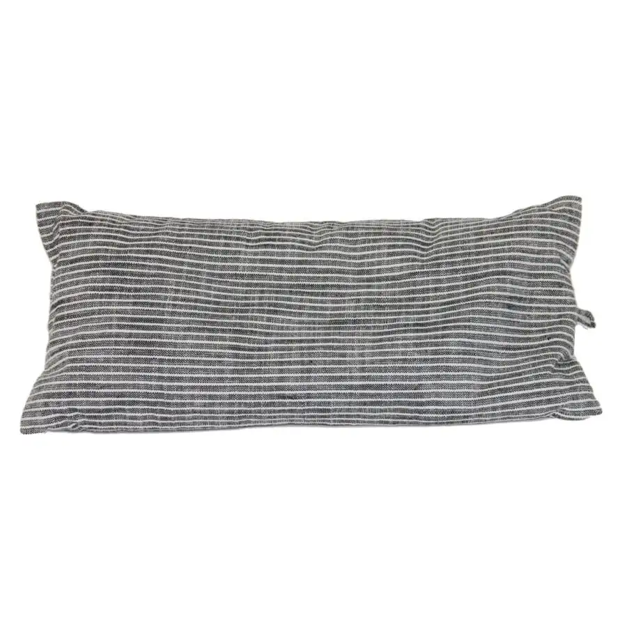Sauna pillow for relaxing moments in the sauna. Thin stripes in black fabric. Cover 100% cotton, Velcro fastening. Hand wash, Washing instructions in the product. Pillow interior with thermocol balls.