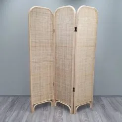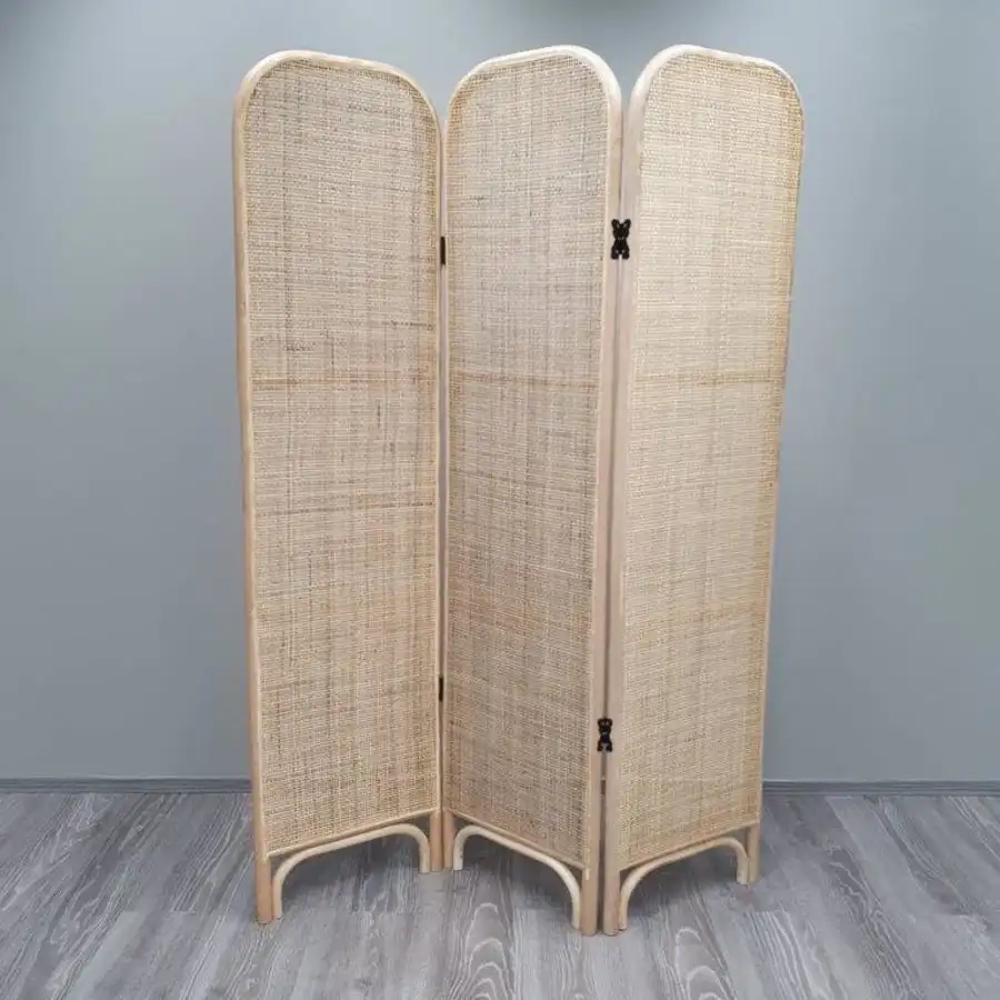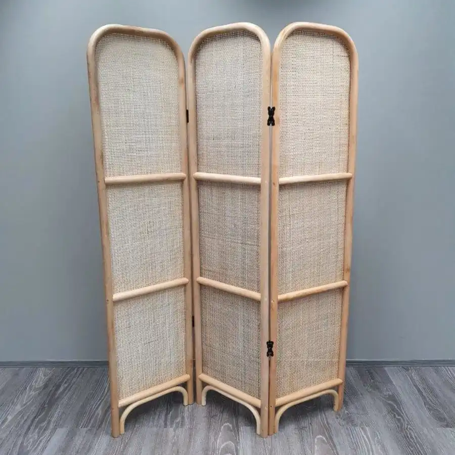 Albert rattinkisermi is an excellent and stylish room divider. It is also easy to move from place to place as needed. The three-part screen is hinged, so you can adjust its length and shape on the floor to your liking.